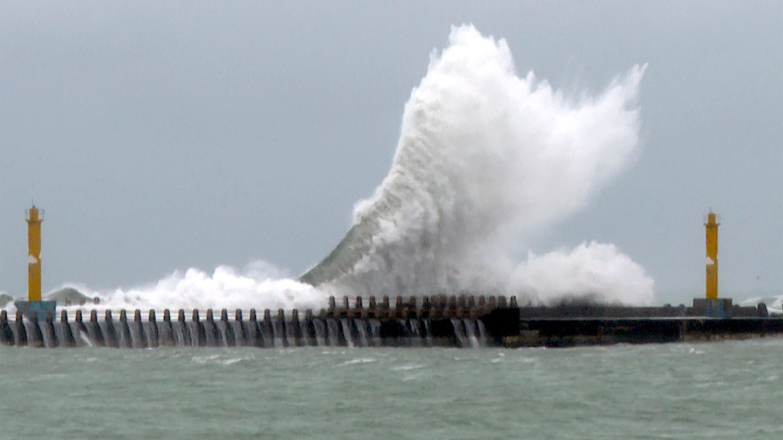 Bangos trenkiasi į pakrantę Taivano šiaurės rytų Yilano apskrityje. Nuotrauka: AP