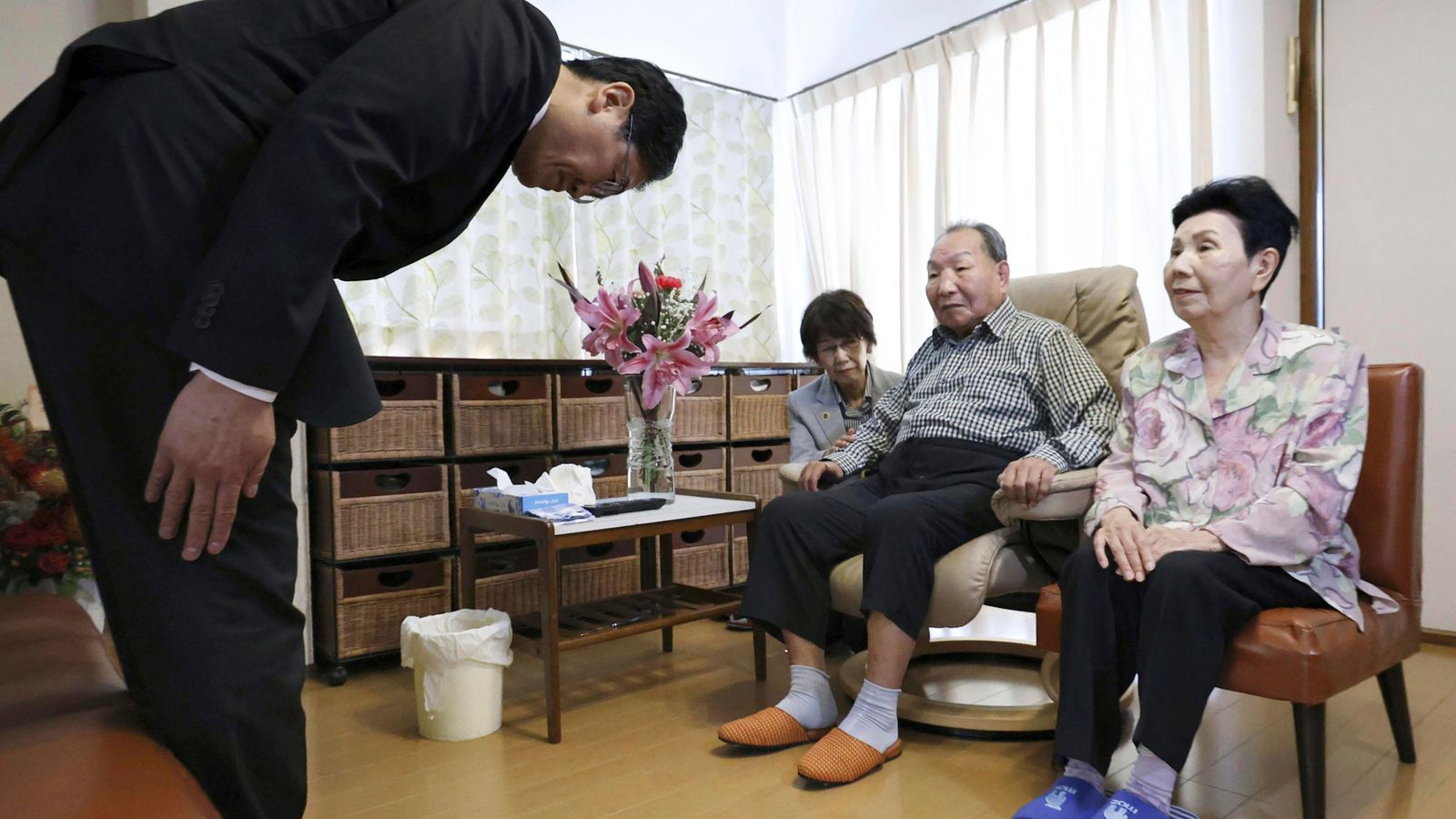 91 metų J. Hakamados sesuo Hideko Hakamada, kuri ilgą laiką palaikė brolį, kad išsiaiškintų jo vardą ir dabar gyvena su juo, padėkojo policijos vadovui už apsilankymą pas juos.