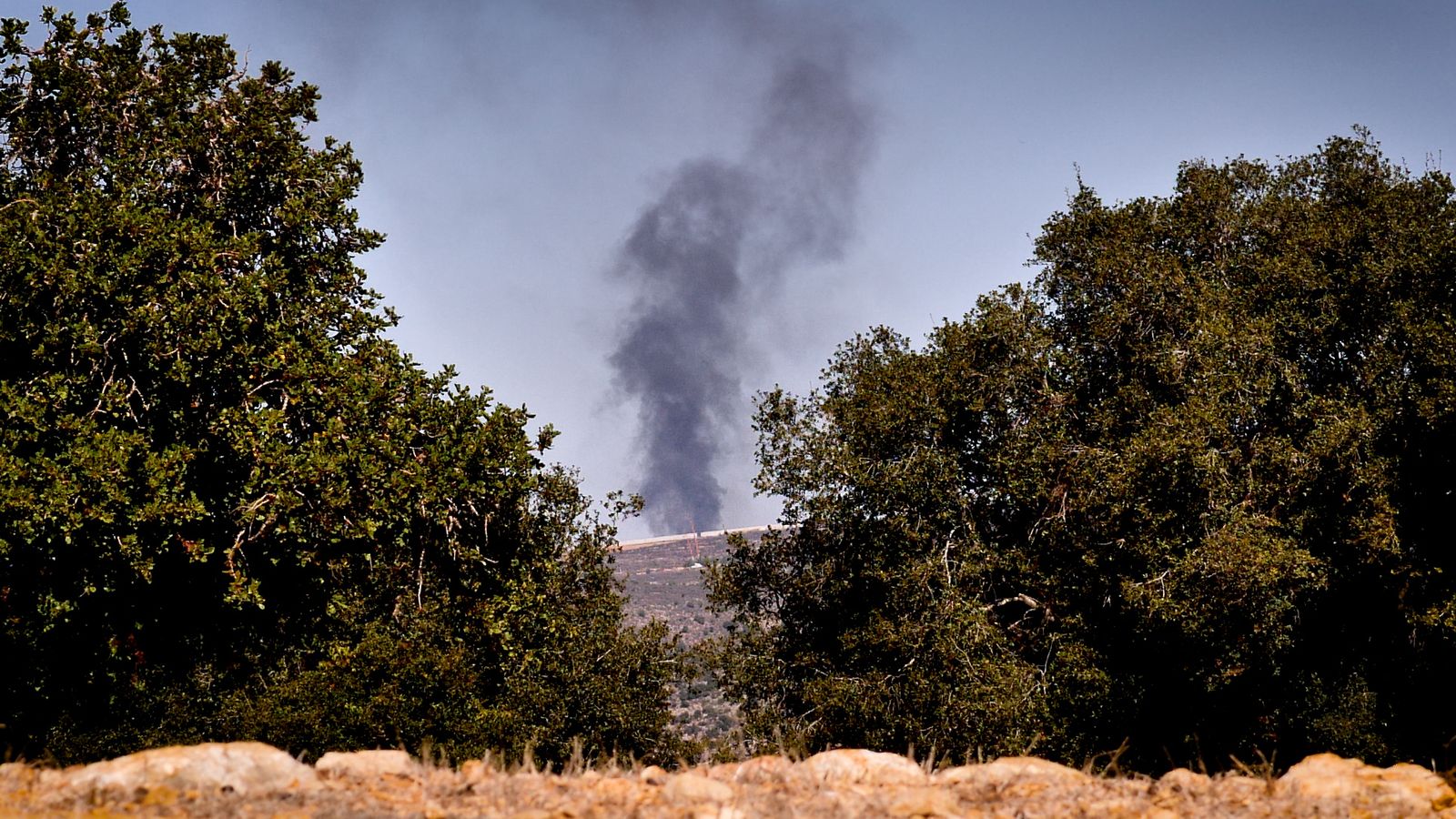 Izraeliečiai palaiko savo kariuomenę reguliariai šaudydami sviediniais į Libano teritoriją. Kai stovime pasienyje, matome, kad nuo keteros į orą kyla dūmai.